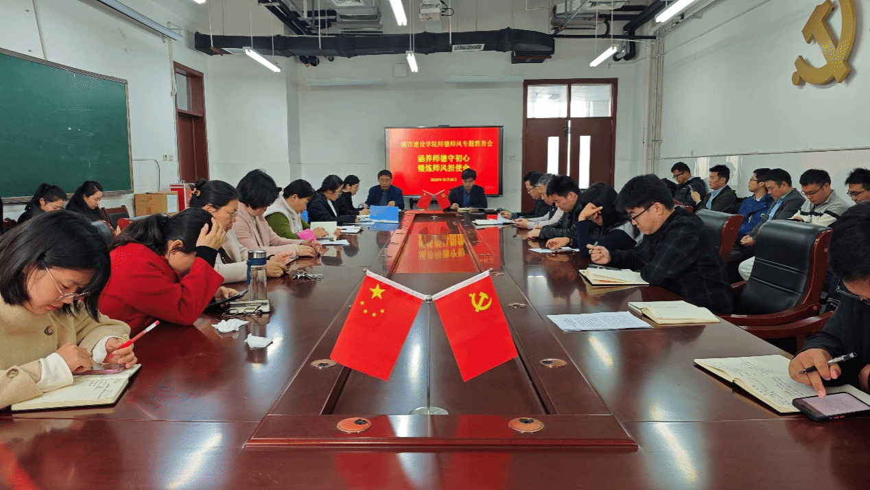 为全面贯彻新时代教师队伍建设要求,进一步加强教师职业道德建设,提升教师队伍整体素质,构建良好师生关系,营造风清气正的育人环境,城市建设学院于2025年10月30日在W221会议室召开师德师风专题教育会议。学院党委书记李战国主持会议,学院全体教职工参加。