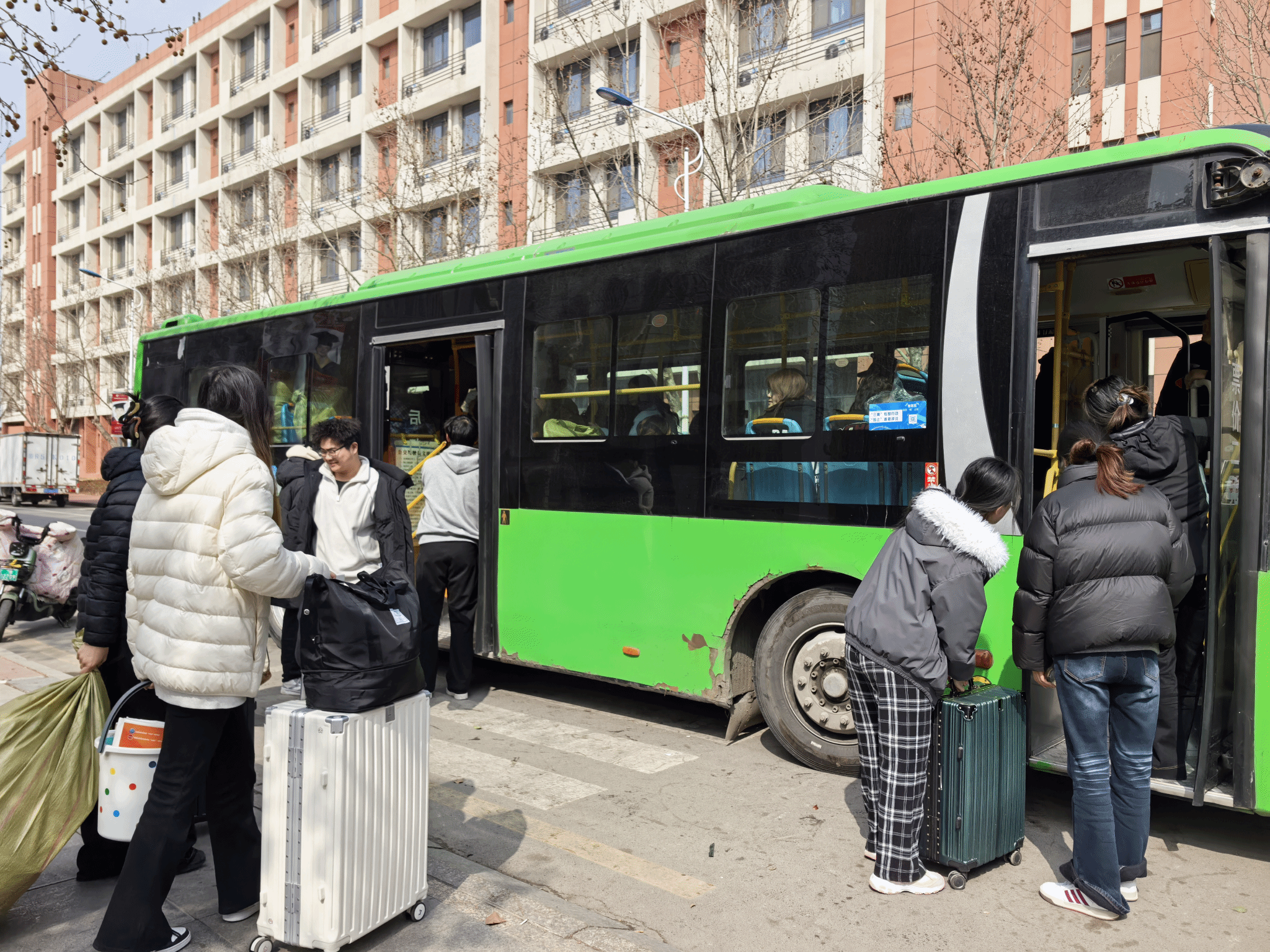 3月6日,学生宿舍集中搬迁正式启动。学院提前按班级编排乘车批次,协调公交车辆“连人带行李”一站式转运。当日清晨,全体辅导员、班主任准时到岗,在学生志愿者的协助下,组织学生有序打包、整齐候车;现场工作人员分工协作,贴心帮助搬运行李,应急小组全程待命。整个过程秩序井然、高效顺畅。同学们走进窗明几净的新宿舍,纷纷为学院的精心组织和老师们的暖心服务点赞。