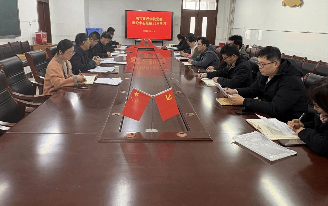 11月28日下午,城市建设学院党委理论学习中心组在综合实验楼W221室举行2025年第11次集体学习,学院党委书记李战国主持学习并讲话,党委副书记、院长高涛及其他中心组成员参加学习。学校列席旁听第十三工作组成员、党委(院长)办公室主任牛健康及督查科科长寇鲁欢列席旁听。