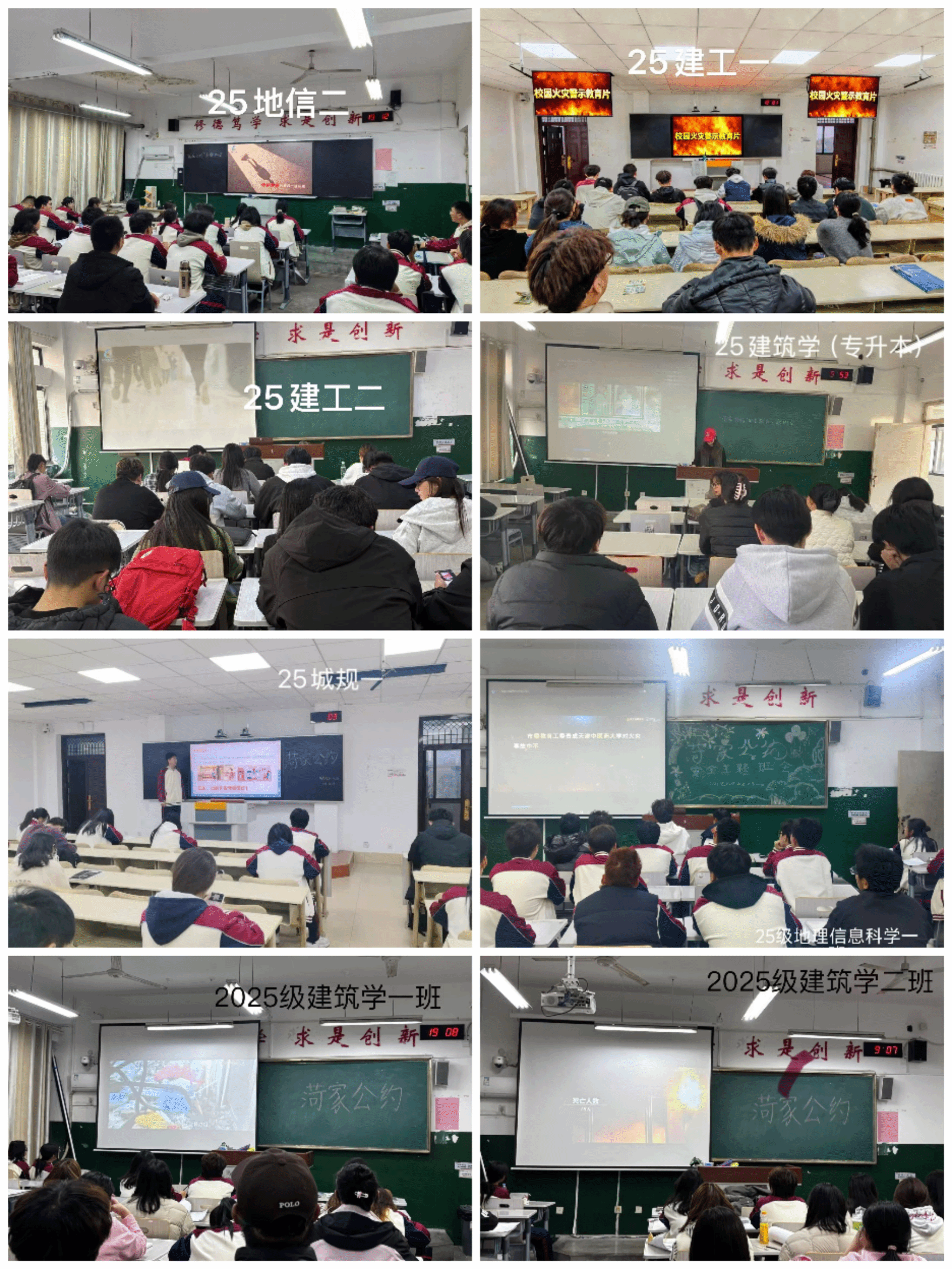 班会上,各班班长结合本班宿舍实际情况,有针对性地指出了存在的安全隐患,如人走未断电、易燃物品摆放不当等问题,并组织同学们观看了校园安全教育警示纪录片。纪录片通过真实案例,深入剖析了各类安全事故的成因与防范要点,触目惊心的画面与切中要害的提醒,使同学们深刻认识到安全防范的重要性。班会还共同制定了《“菏家社区”安全公约》,同学们郑重签署承诺书,表示将自觉遵守安全规章,主动参与安全宣传,争做文明安全的城建学子。