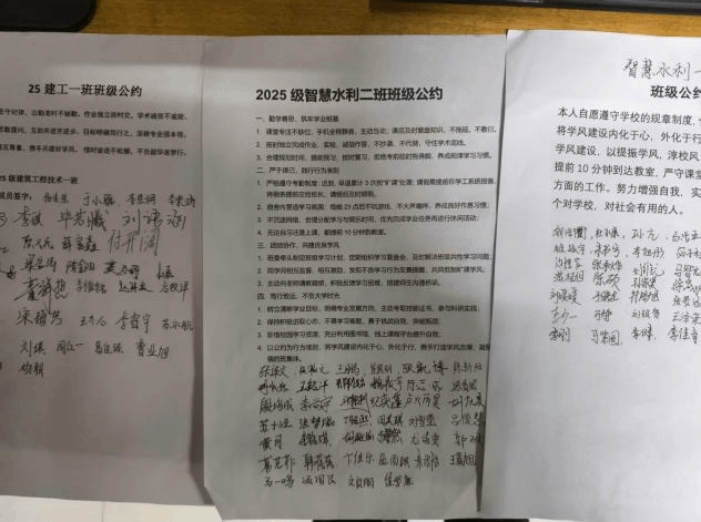 在主题班会环节,各班班长首先阐明学风建设对个人与集体的重要意义,引导同学们结合出勤、作业、课堂互动等实际情况,梳理学风薄弱点;随后学生分组协作,拟定涵盖勤学笃行、行为规范、互助共建等内容的班级学风公约,全体签字确认,增强共建共守意识。同时,学院推广“无手机课堂”,通过统一配置手机收纳袋,引导学生主动暂存电子设备,减少课堂干扰,提升听课专注度,推动课堂教学从“知识传授”向“能力培养”转型。活动现场氛围积极,同学们响应热烈,纷纷表示将以务实行动投身学风建设,以实干作风锤炼优良学风,为营造勤学善思、笃行致远的班级学习氛围贡献力量。