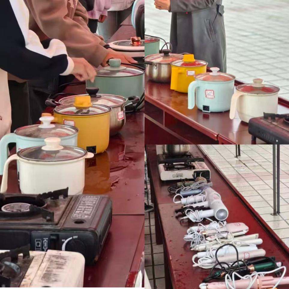 活动中,志愿者在搭建的展区中集中展示宿舍违规电器、管制器械如“热得快”“吹风机”等实物和宿舍风险案例展板,通过“图文+实物”形式直观呈现安全隐患,由讲解员结合违规电器使用导致老化线路发生火灾的案例讲解安全用电规范。参观学生耐心听从讲解,并在互动问答环节中积极提出相关安全隐患问题,讲解员进行细致回答。在展览结束后进行“学习通线上答题”,全面考查学生风险认知能力与安全知识储备。参与学生纷纷表示,通过此次活动,对宿舍安全了解甚多,并保证在宿舍中不使用违规物品。
