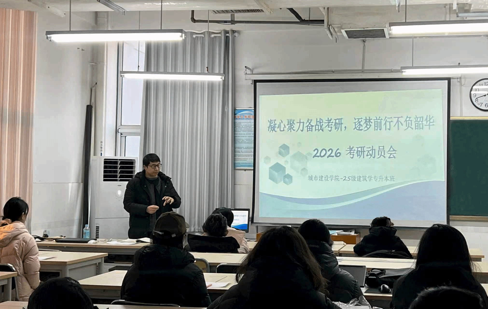 为帮助我院学子明确备考方向、科学规划复习路径,1月8日,城市建设学院建筑系在W331教室召开考研动员会。系主任、专业教师代表以及2025级建筑学专升本班共同参加。