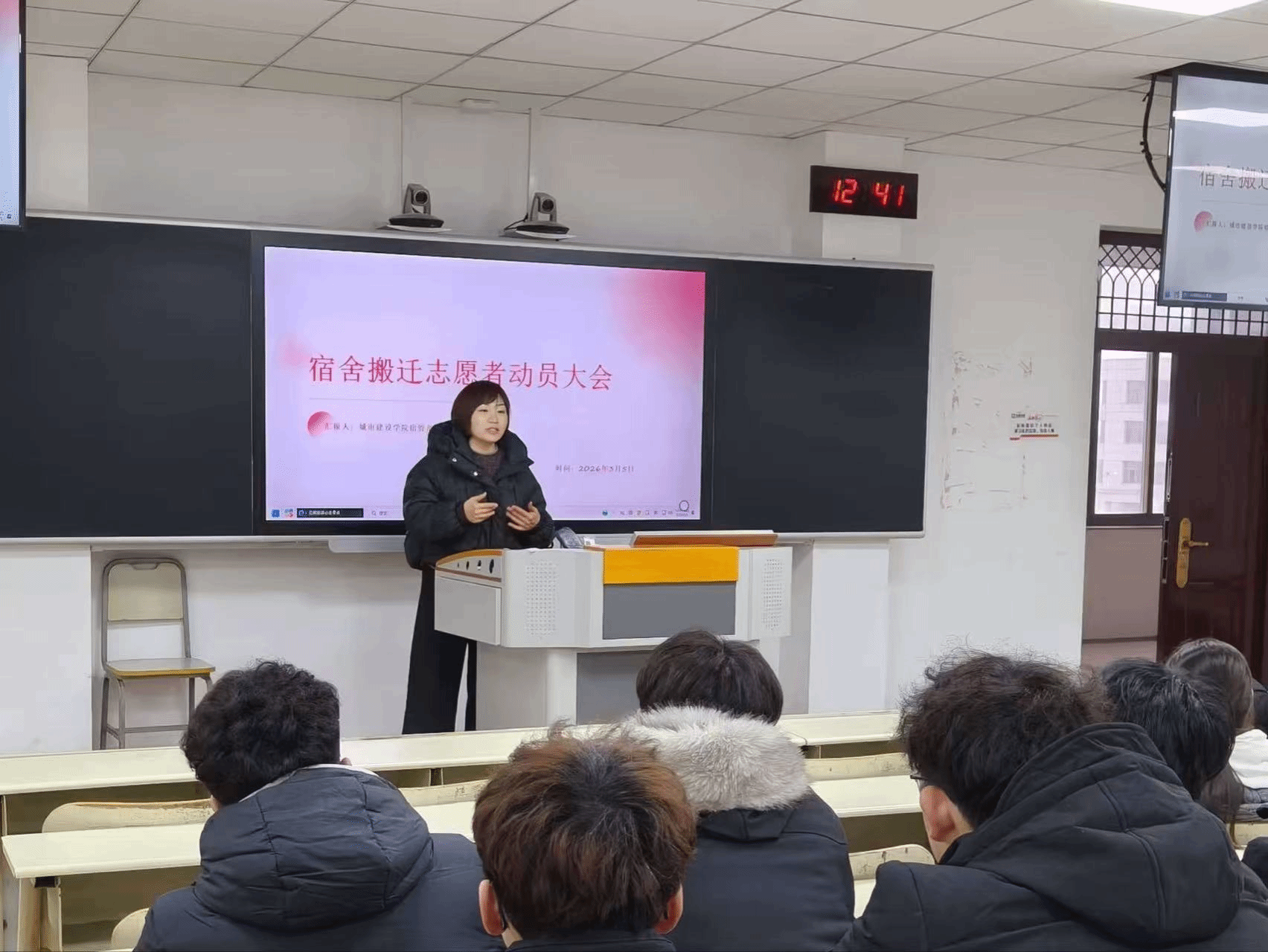 3月5日,学院召开宿舍搬迁志愿活动动员大会,学工办主任陈伟、辅导员李伟及全体志愿者参会。会议详细部署搬迁方案,要求志愿者发扬奉献精神,做到“有温度、有速度、有秩序”,保障搬迁工作安全有序推进。
